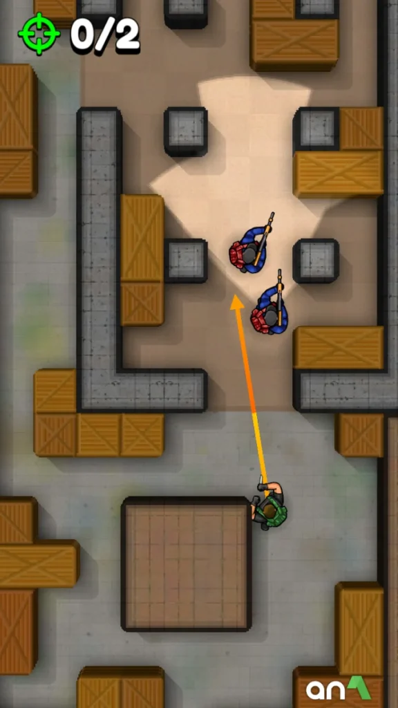 - You can see the level layout, walls, boxes, hiding places, and moving guards from above thanks to the game’s top-down viewpoint.